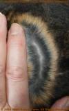 This allele is affected by temperature - pigment forms only where the skin is exposed to coll temperatures. Skin that is kept warm will grow hair lacking pigment (i.e. white).